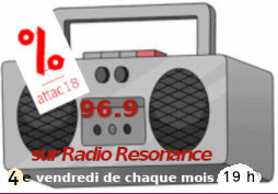 L’émission de radio mensuelle d’Attac18 aura lieu le vendredi 28 novembre à 19h00 (changement d’horaire) : émission à écouter en direct sur Radio Résonance (96.9), comme tous les 4ème vendredi du mois.